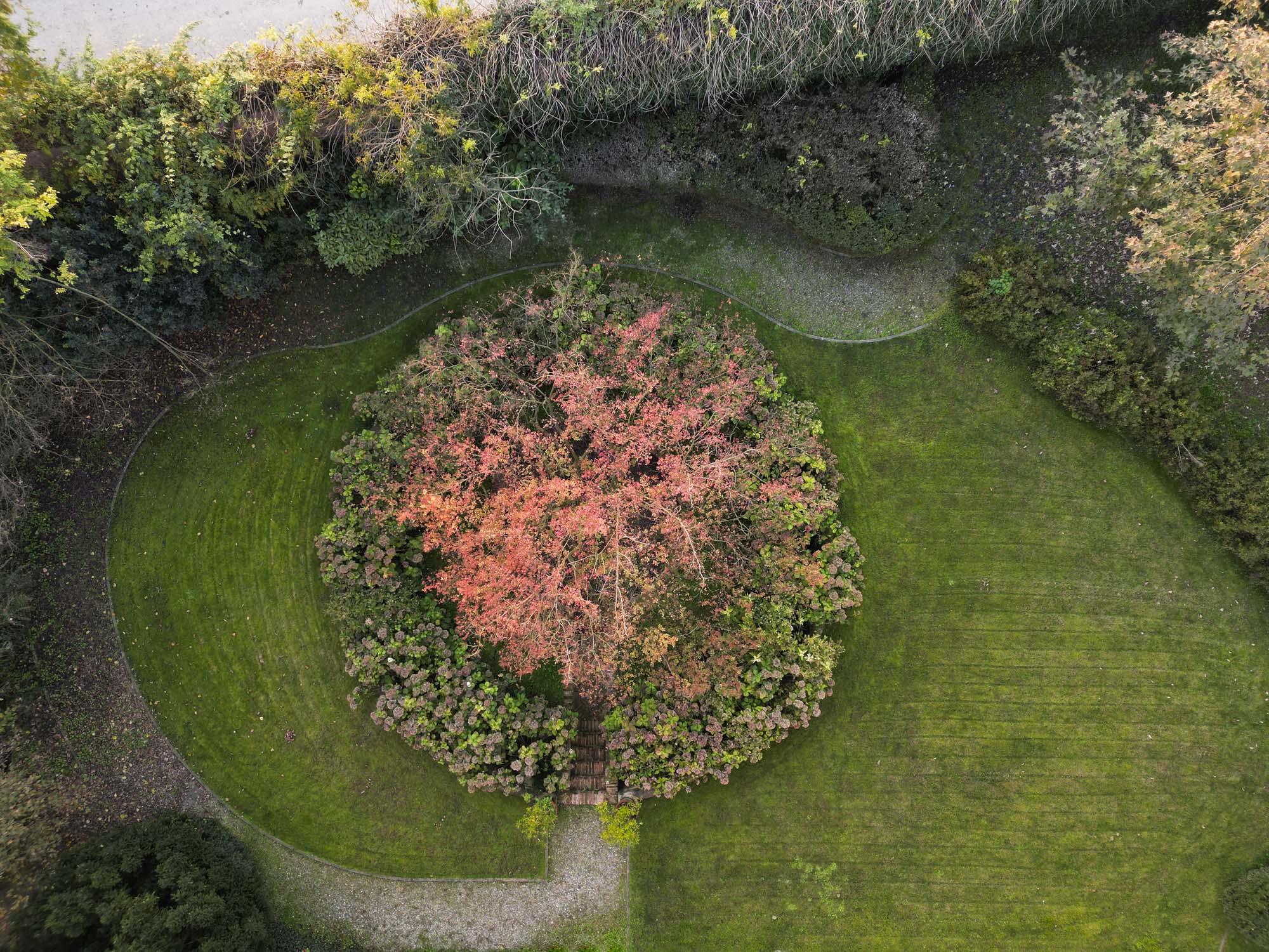 Accompanying a historic Renaissance villa near Crema, the garden of Villa Albera is structured around two areas. The first, more “architectural” and closer to the house, is characterised by its learned and playful eclecticism, in which winding paths and sinuous topiary hedges lead the way to a terraced roundabout and an artificial hill. The second, created after the purchase of an agricultural plot to its north, features a long pond, which naturally directs the gaze toward a grove of six cypress poplars arranged in a funnel shape.